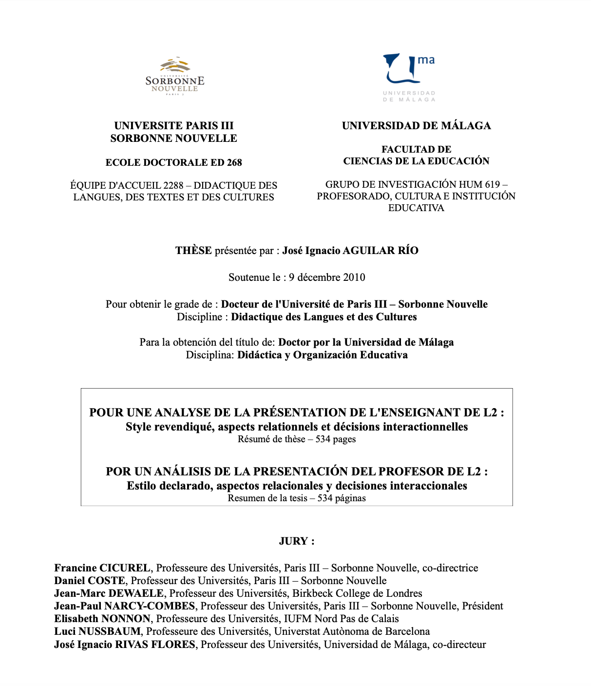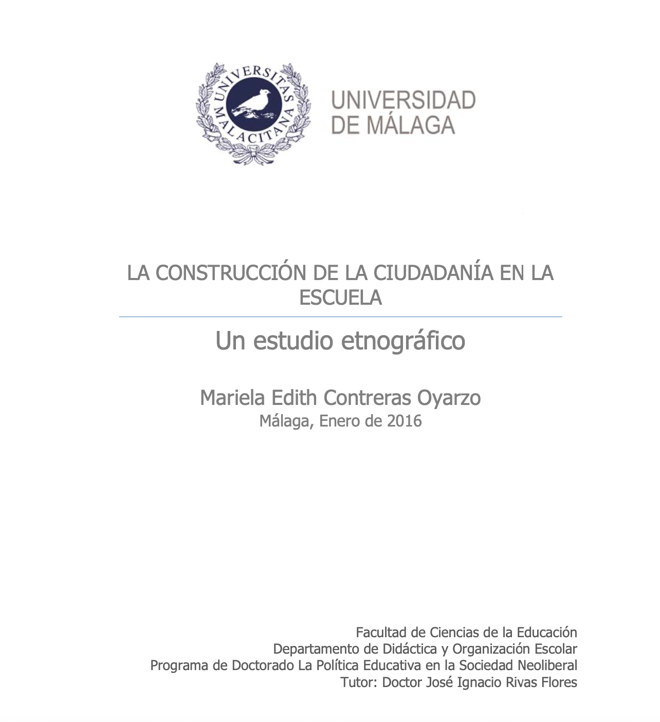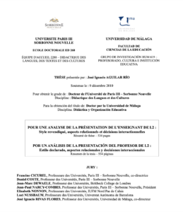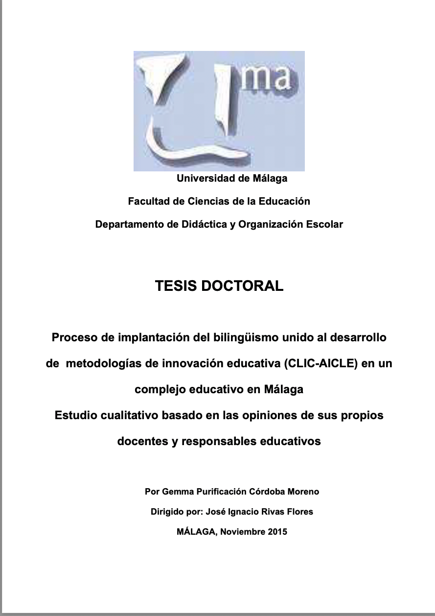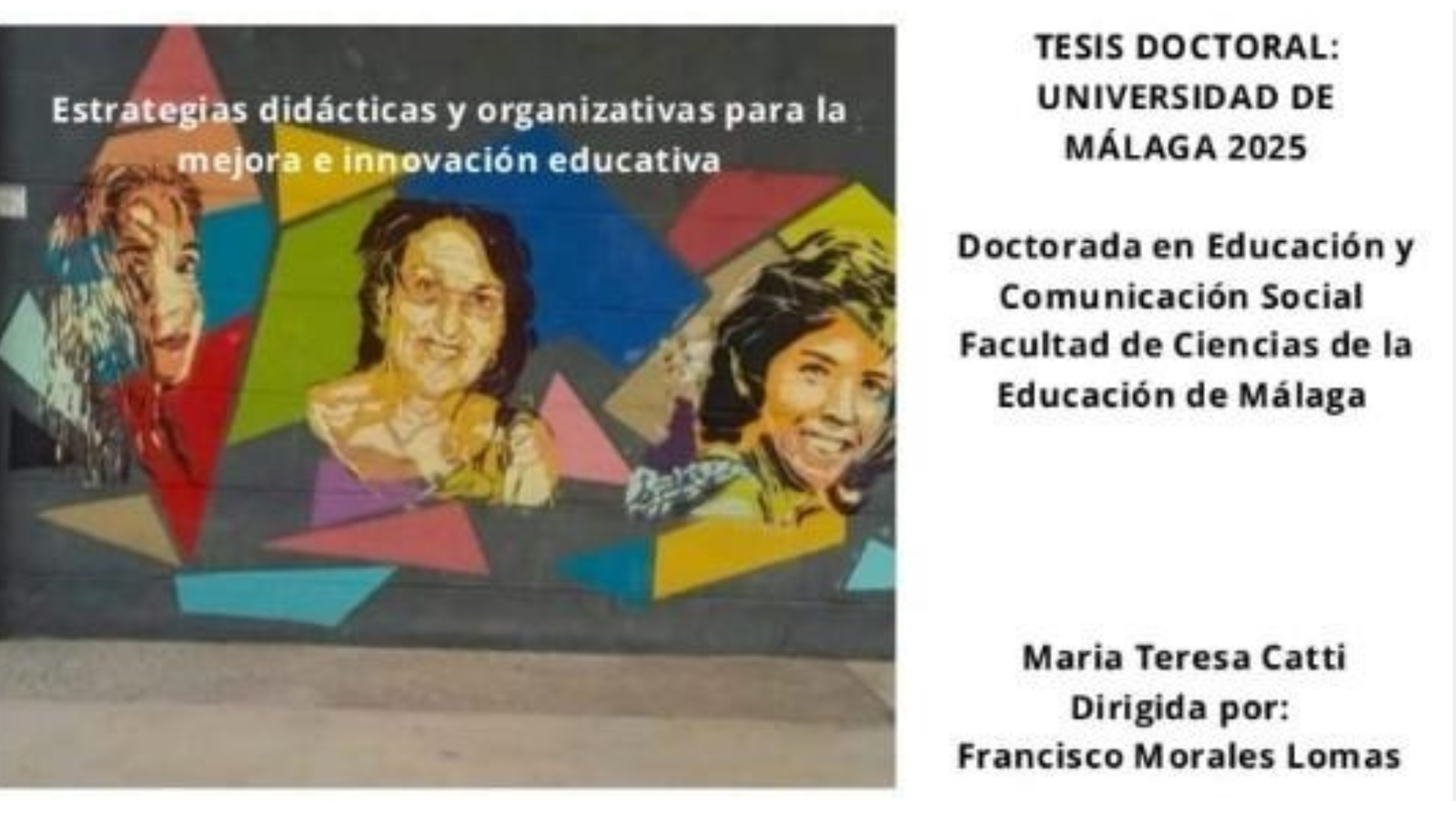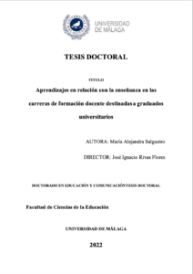 Catti, Mª Teresa (2025) Estrategias didácticas y organizativas para la mejora e innovación educativa. Dirigido por Morales Lomas, Francisco. Universidad De Málaga. Facultad De Ciencias De La Comunicación. Defendida el 24/04/2025. Calificación: Sobresaliente cum Laude. Mención Internacional